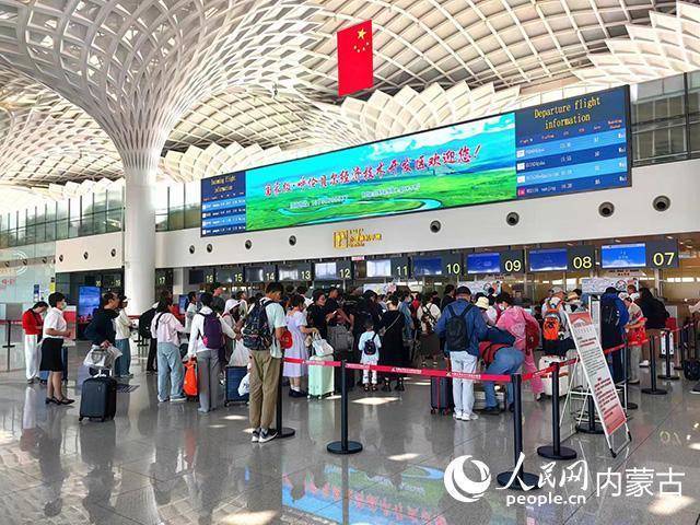 呼伦贝尔机场候机楼内旅客办理乘机手续。内蒙古机场集团供图